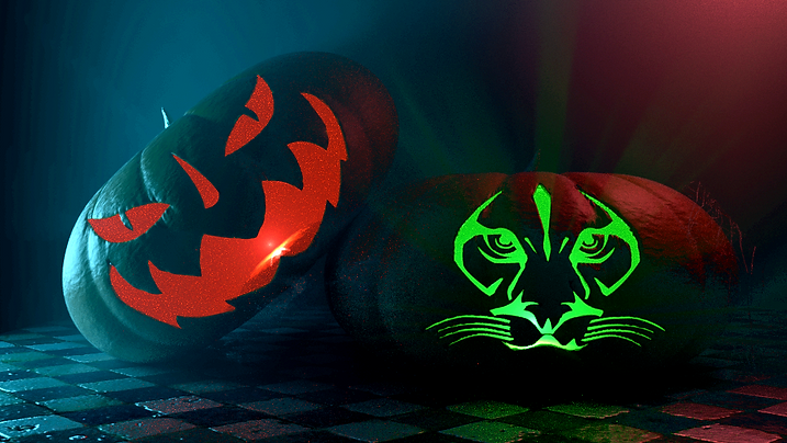 We learnt how to make pumpkins as a part of our contribution to a Halloween display for our school. The students were able to use previous techniques used before, but also learnt some new short cut keys, ways of making a surface appear bumpy using a procedural texture, and using booleans to cut out images they created in Inkscape. They also learnt about Volume Scattering and how it can be used to create a hazy environment.